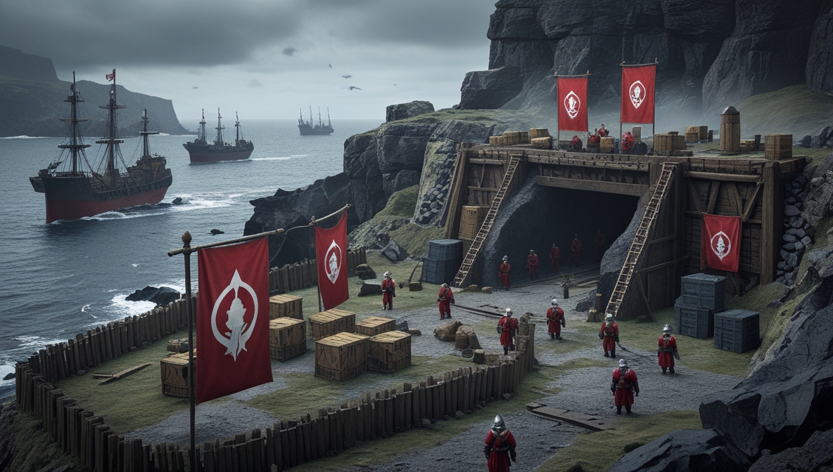 - The encampment is in conflict with pirates operating nearby.