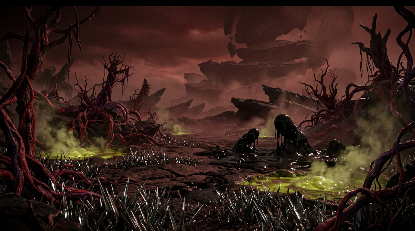 Upon arriving deeper within the plane, they immediately discovered its hostile terrain and were attacked by black puddings emerging from the acid pools.