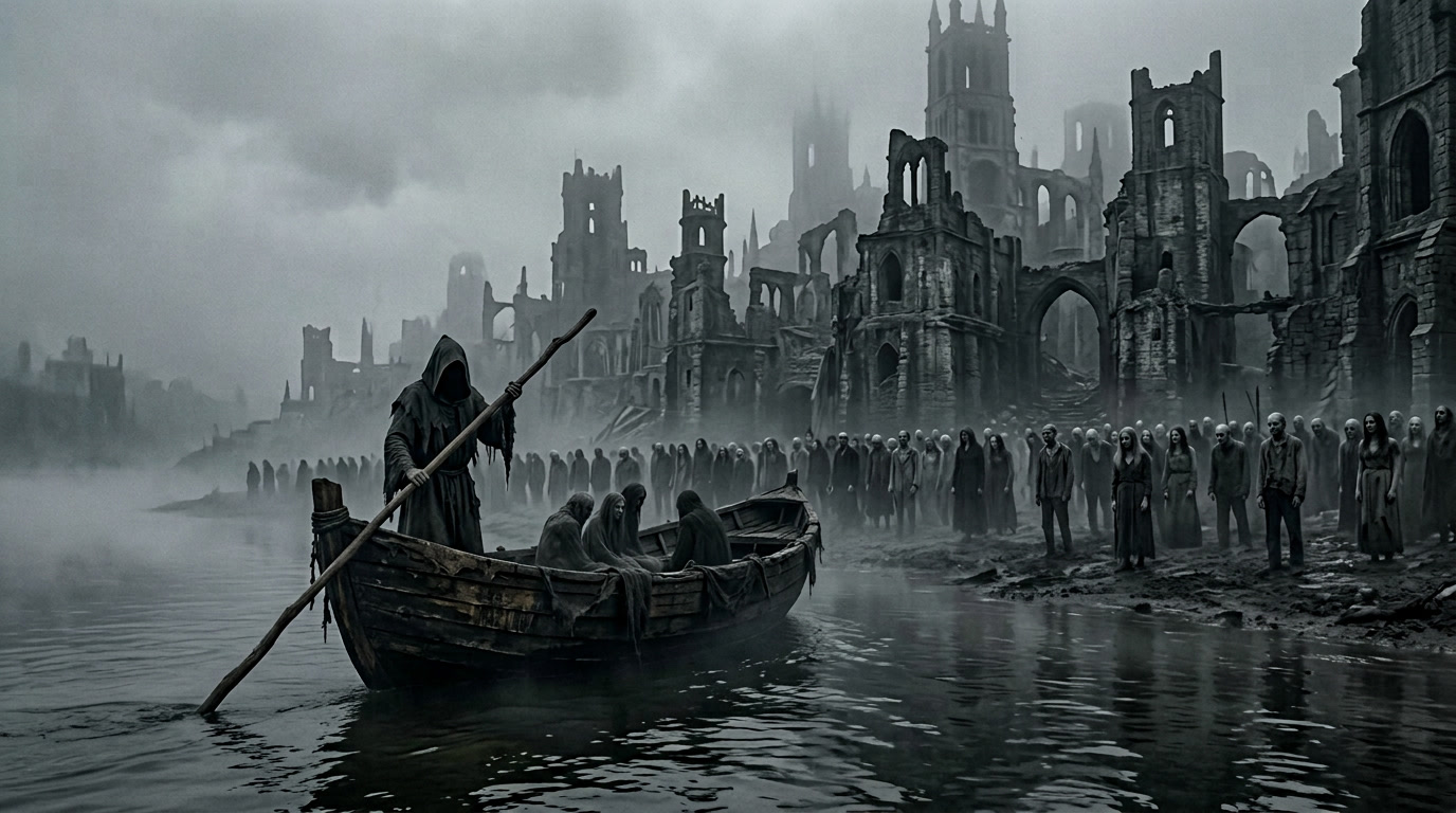 - Those who stand upon its shores watch passing ferries with the stillness of the already judged.