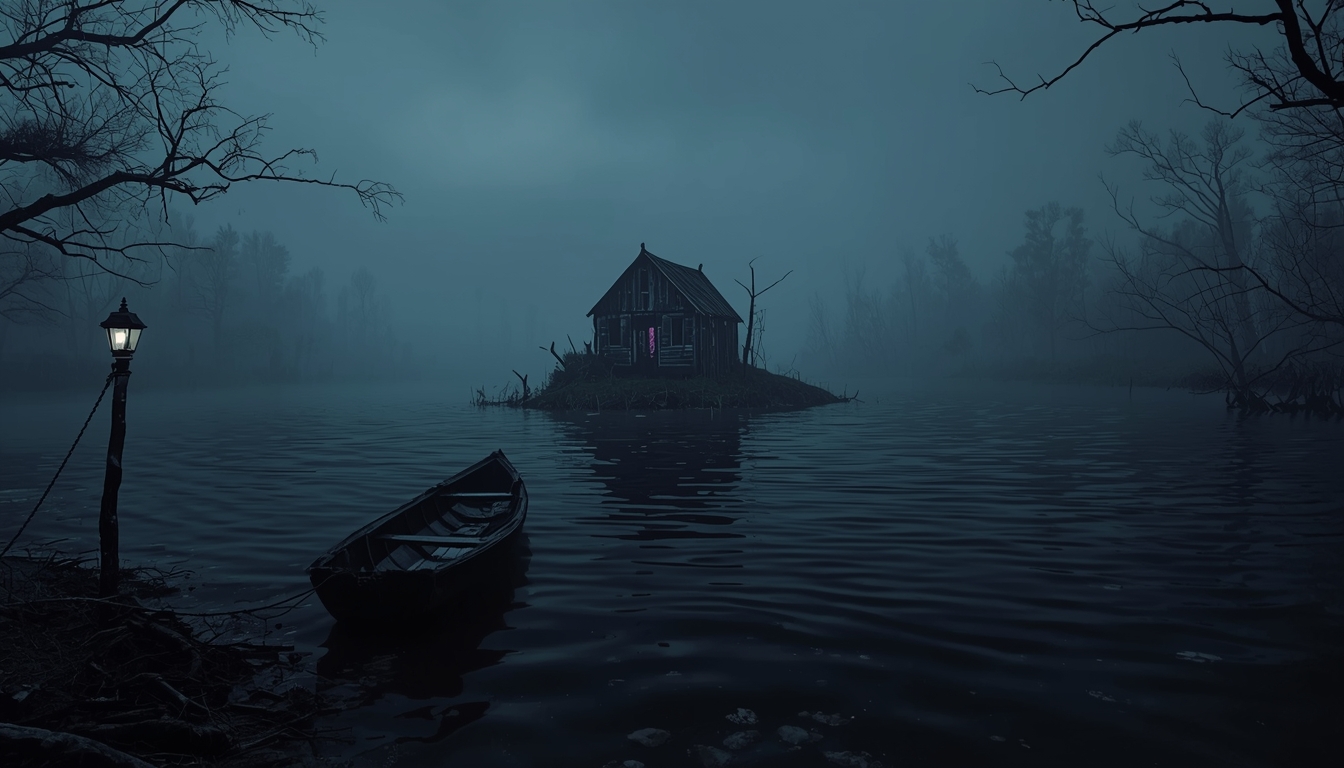 - There is a hut on a swamp island that can only be reached safely by a single boat and a lamppost-marked approach.