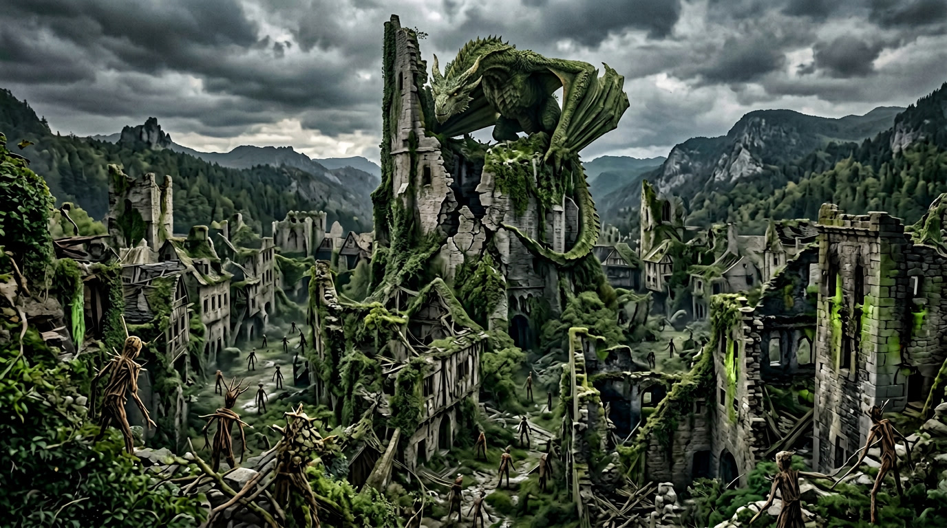 - Their settlement now lies in ruin, and a dragon is said to rule over what remains.
