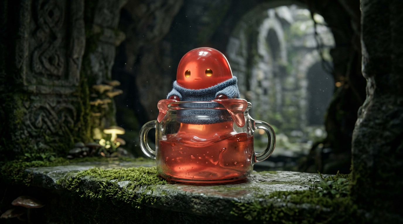 - rides around in a glass jar with little handles on each side, wears it like pants.